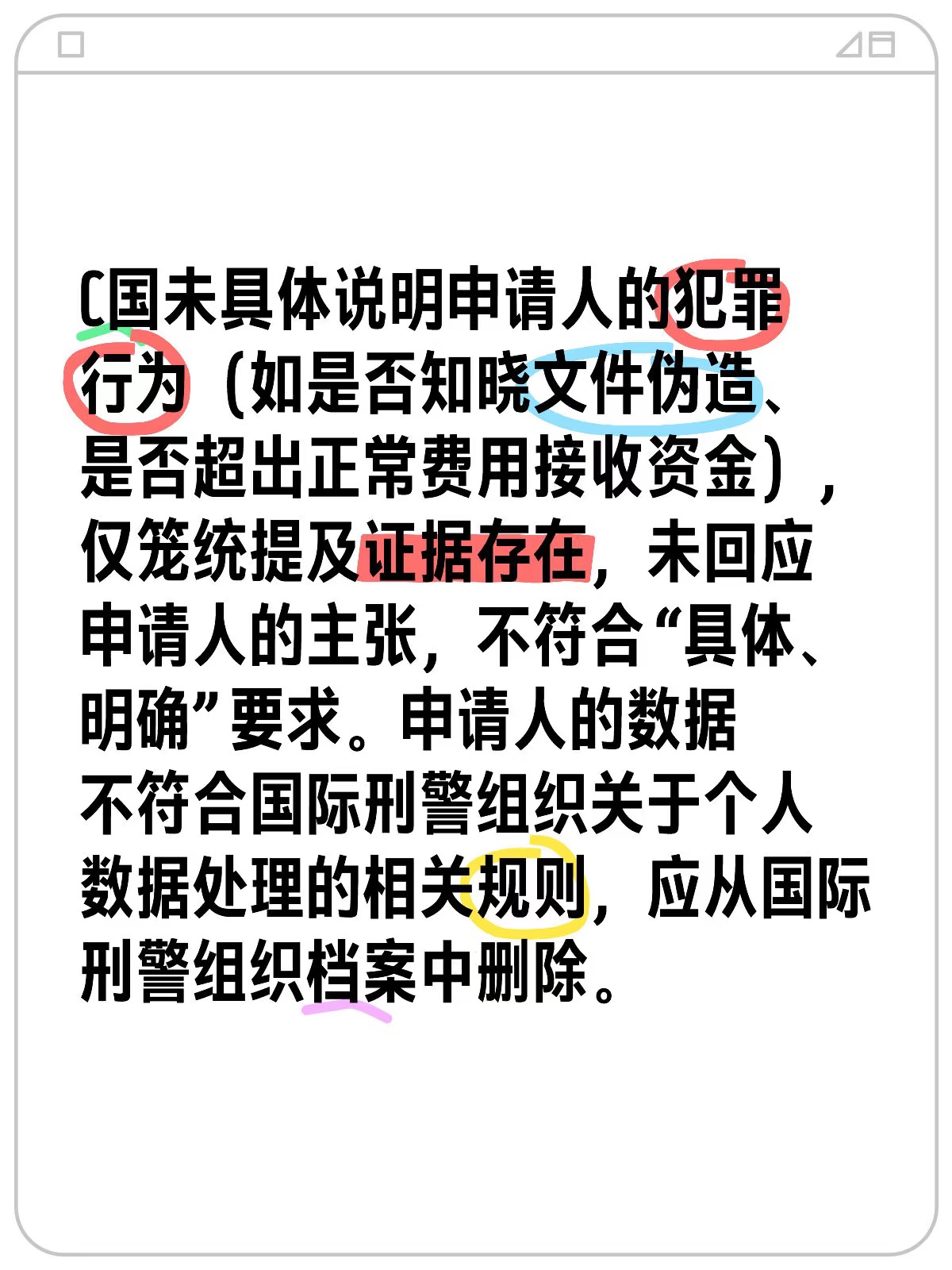 最终结论:涉申请人及其子的数据不符合国际刑警组织关于个人数据处......